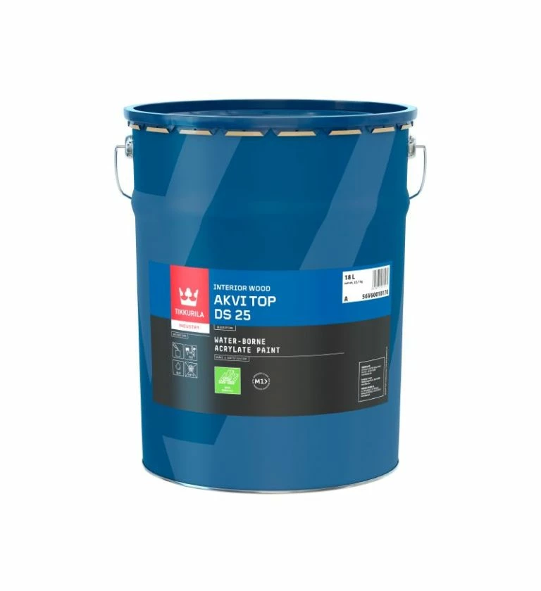 Can be stacked rapidly and is therefore an excellent choice for topcoating of fire retardant paint. Akvi Top DS 25 has been approved as a topcoat in interior fire retardant painting system.