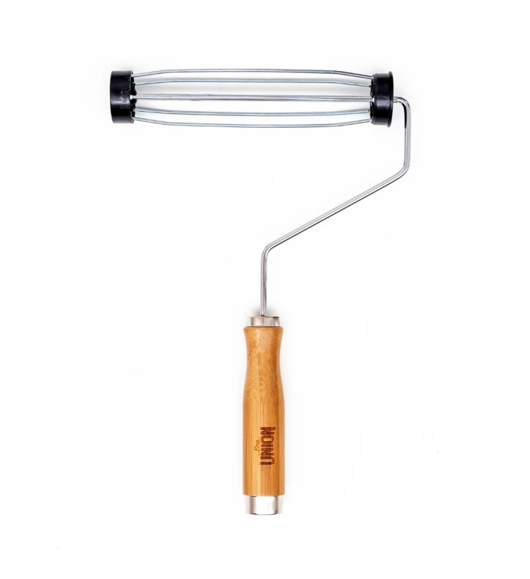 9″ bamboo handle roller frame from Eco-Union. Metal frame and plastic end caps are made from recycled materials.