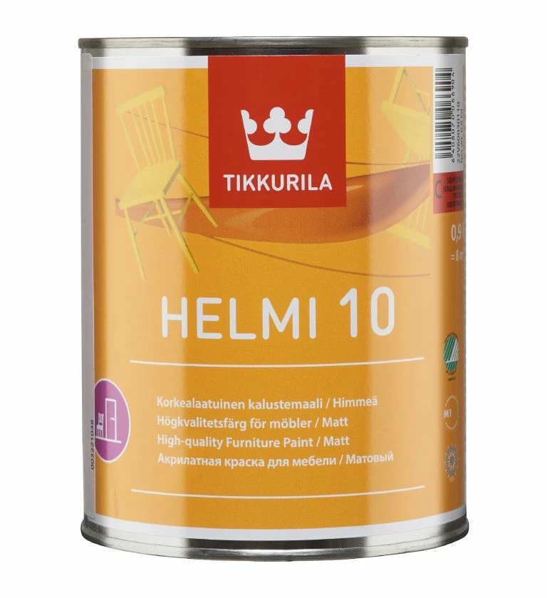 Suitable for interior trim and furniture, including doors, skirting, kitchens, radiators and cabinets. Helmi is suitable for application onto metal after priming and will not yellow under heating. Helmi cures to form an incredibly tough film which can be cleaned and washed, resistance to scrubbing over 5000 cycles SFS 3755.