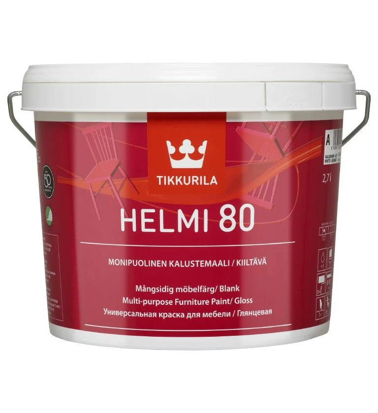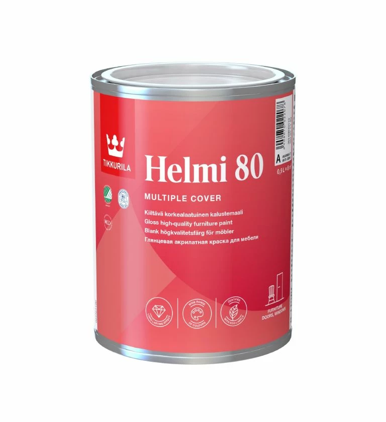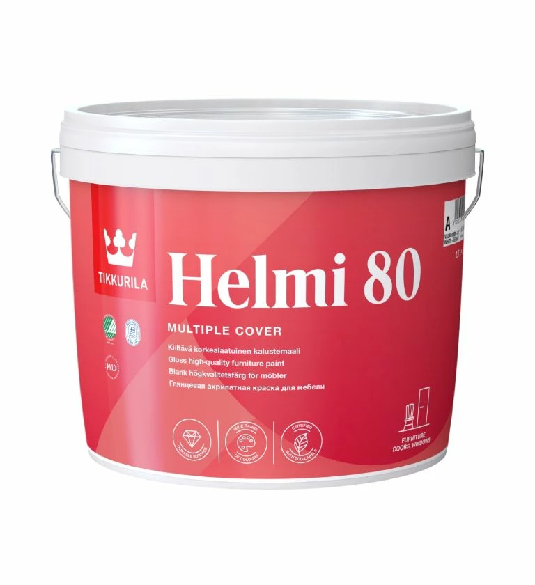 Interior trim and furniture, including doors, skirting, kitchens, radiators and cabinets. Helmi is suitable for application onto metal after priming and will not yellow under heating. Helmi cures to form an incredibly tough film which can be cleaned and washed, resistance to scrubbing over 5000 cycles SFS 3755.