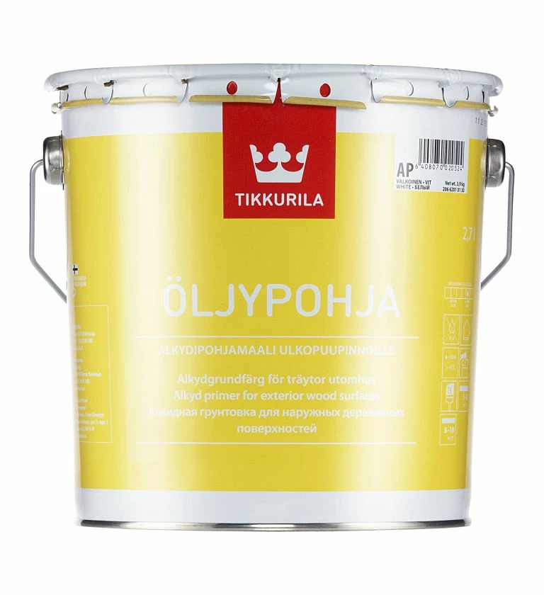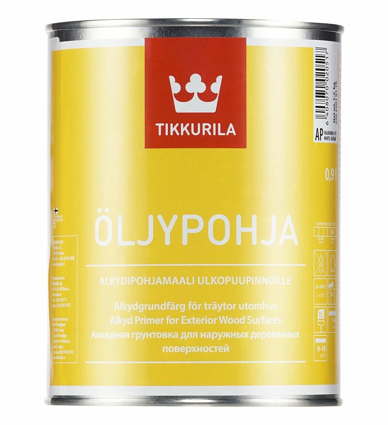 Oljypohja is an alkyd microporous wood primer suitable for application to new and previously painted timber prior to overcoating with Tikkurila topcoats. Oljypohja is fully tintable to topcoat colours.