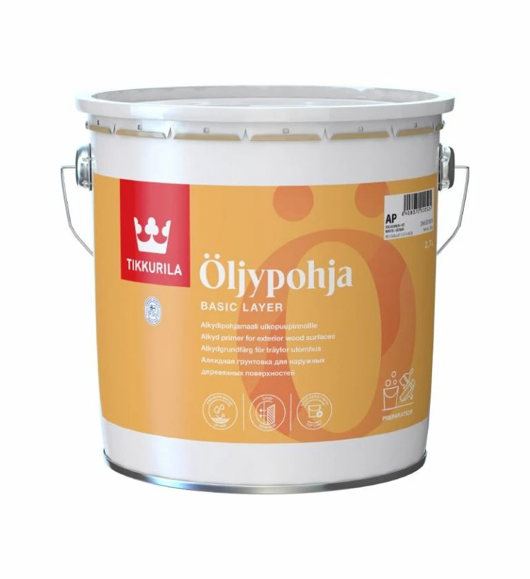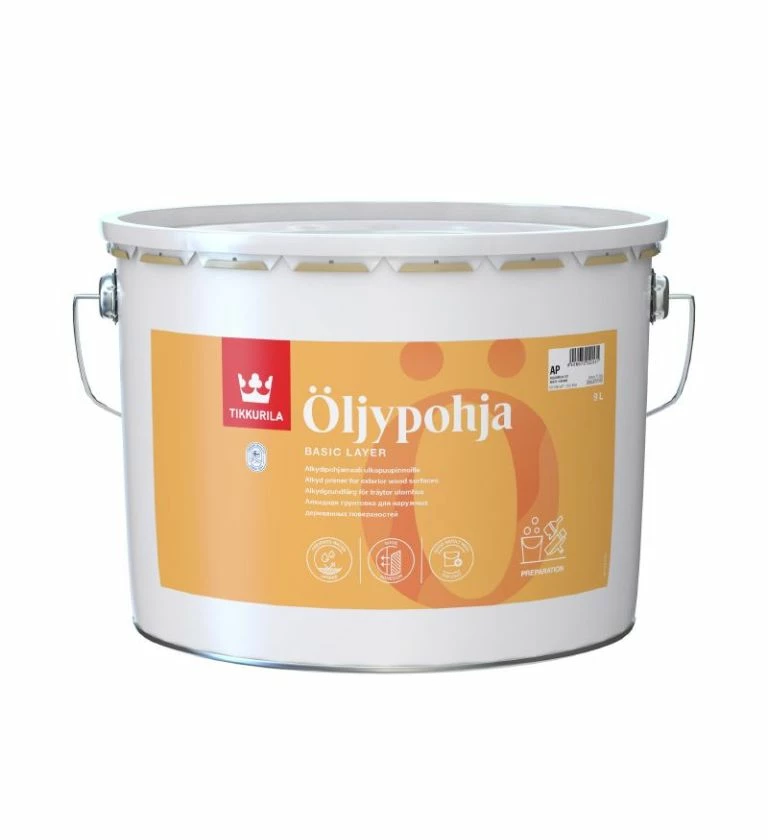 Oljypohja is suitable for both new and previously painted timber surfaces, rough or smooth in addition to impregnated wooden surfaces. Oljypohja is especially suitable for previously painted timber surfaces and unpainted timber surfaces in poor condition. Once dry, Oljypohja wood primer provides an exceptionally solid, binding primer film.