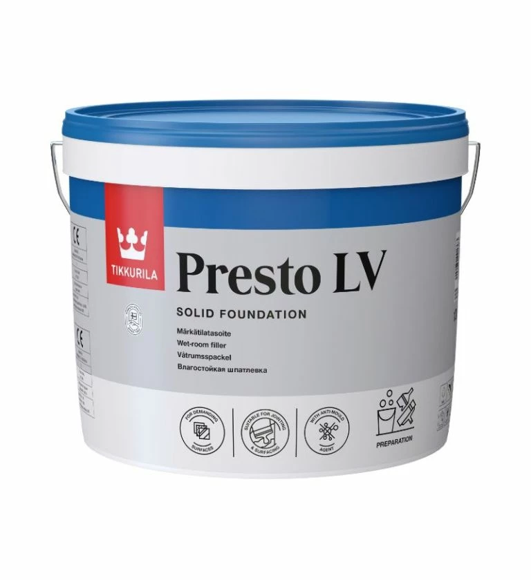 Presto LV is a water-based, ready to use light, humid room filler.