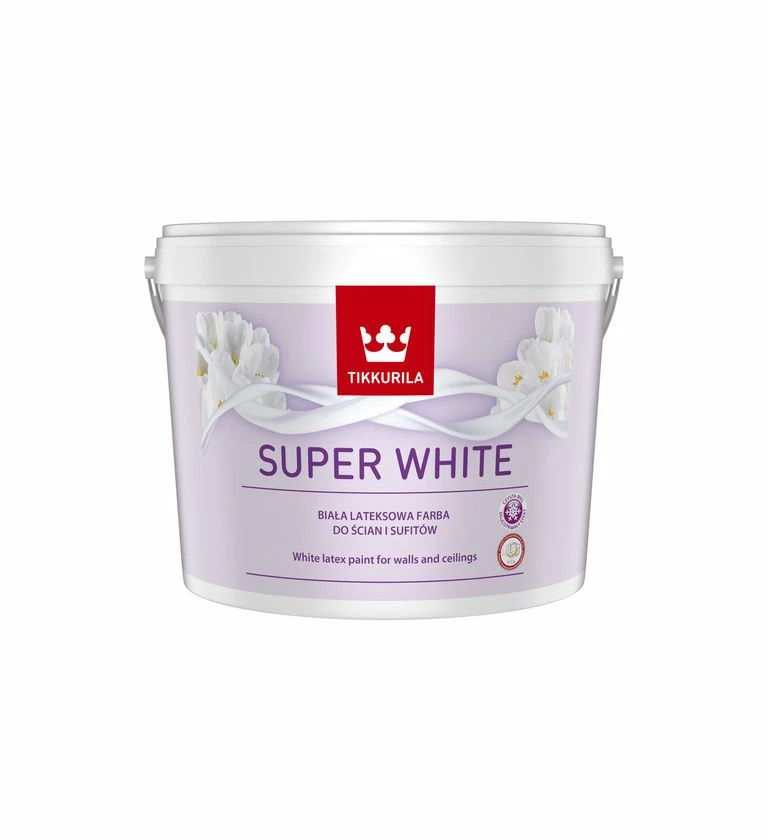 High-quality, water-base, latex white paint, designed for decorative and protective painting of walls and ceilings indoors. Super white is a warm white not brilliant white.