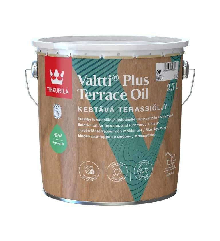 Valtti Plus Terrace Oil is UV-resistant and contains high performance pigments. The weather resistance and colour stability meets a high standard.